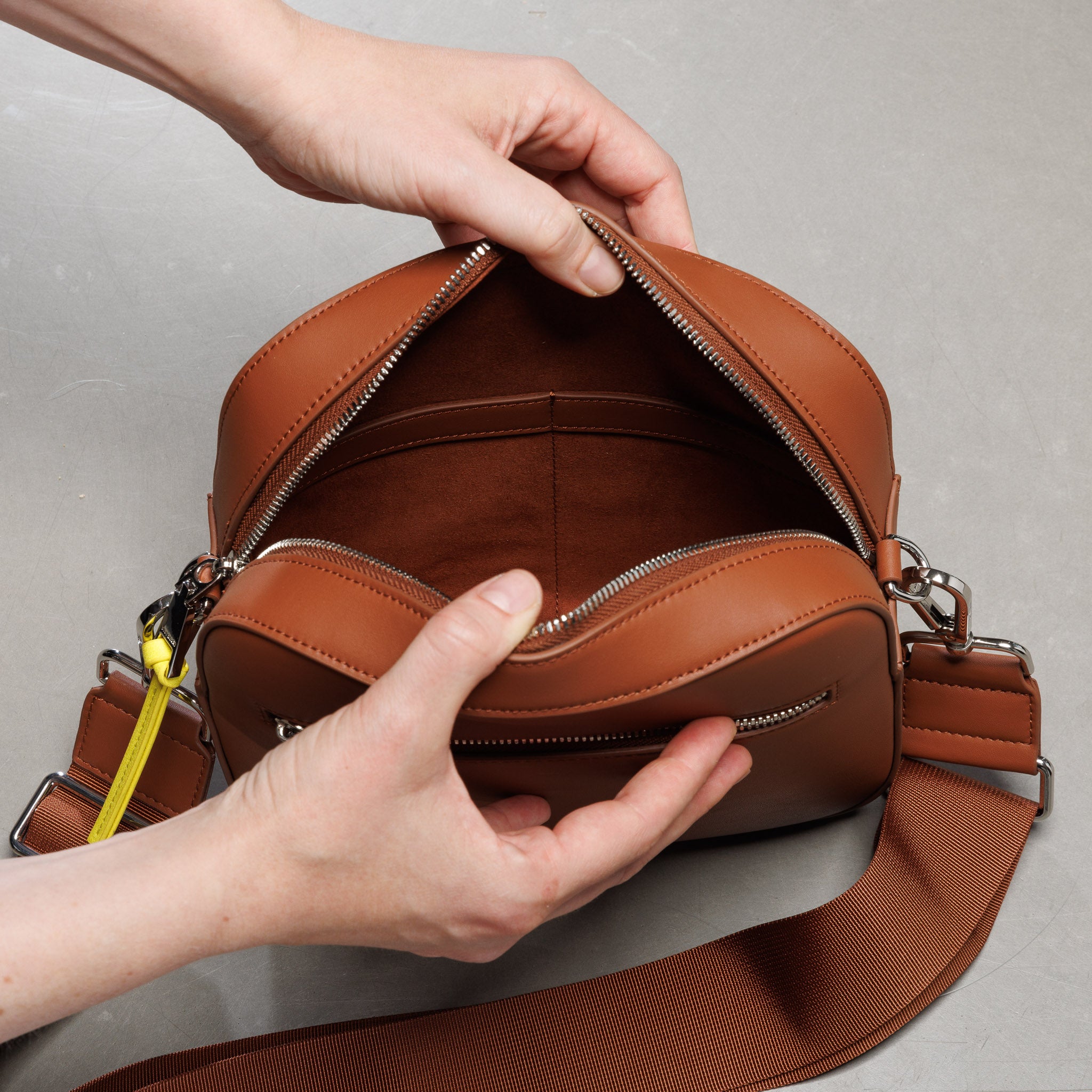 With our modern, timeless crossbody bag made of vegan leather and recycled materials, you've finally found the perfect sustainable companion for every situation in life! Wear the bag as a base and create your individual, urban style with our interchangeable shoulder straps.