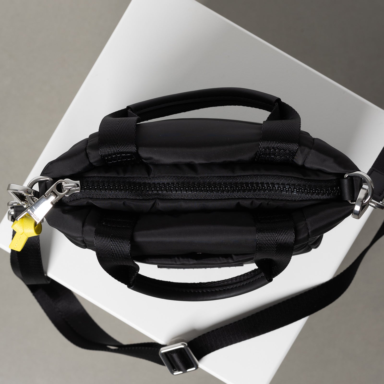 Our super lightweight and water-repellent padded tote bag in size mini is the perfect companion for urban life - 24/7, in bright sunshine or in sudden downpours. The lightweight zipper closes the bag securely from prying eyes and hands.
