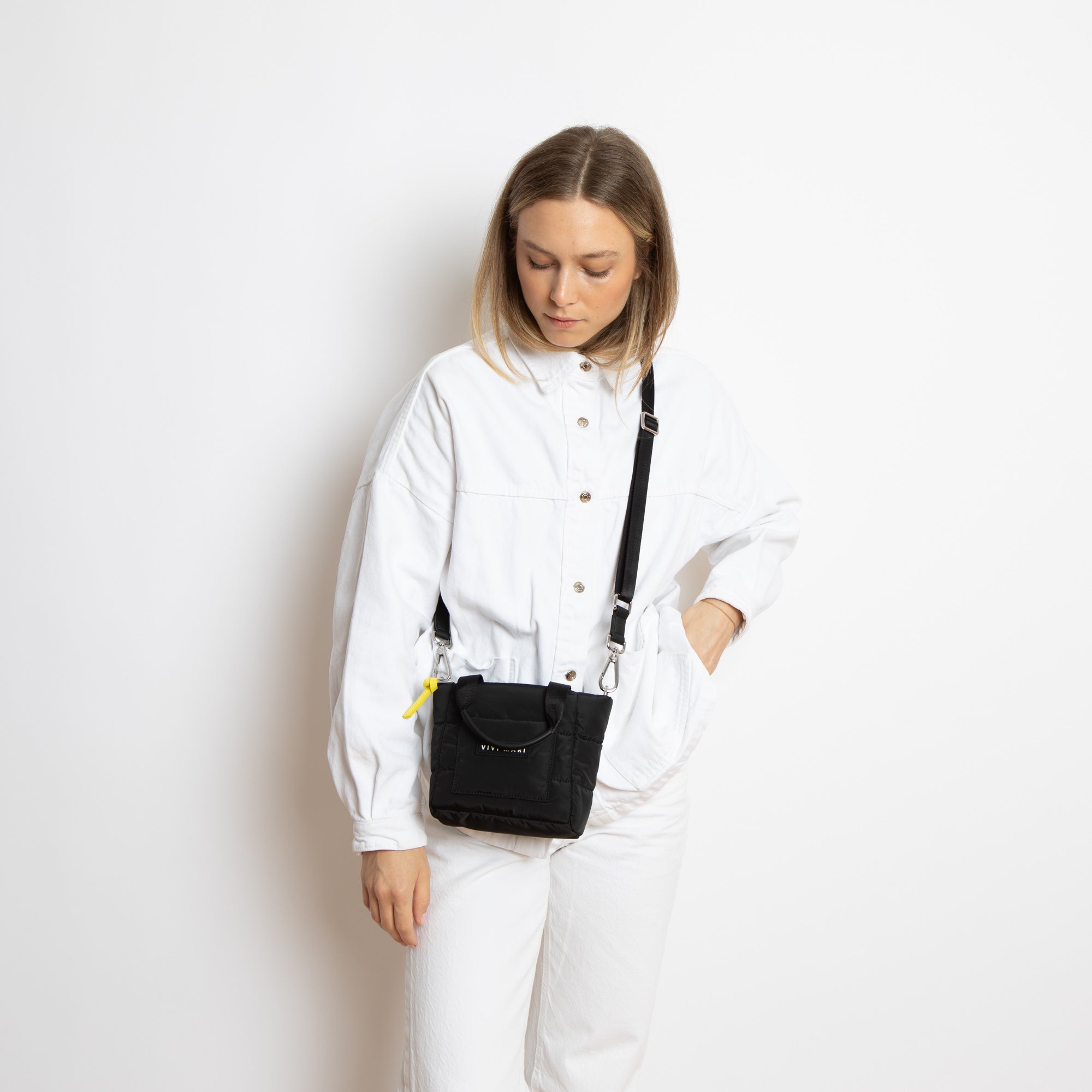 The padded tote bag is our favorite for everyday urban life: crossbody, on the shoulder or simply in your hand - you decide what suits you best. Wear the basic woven strap supplied in the bag color or create your own individual style with our interchangeable straps.